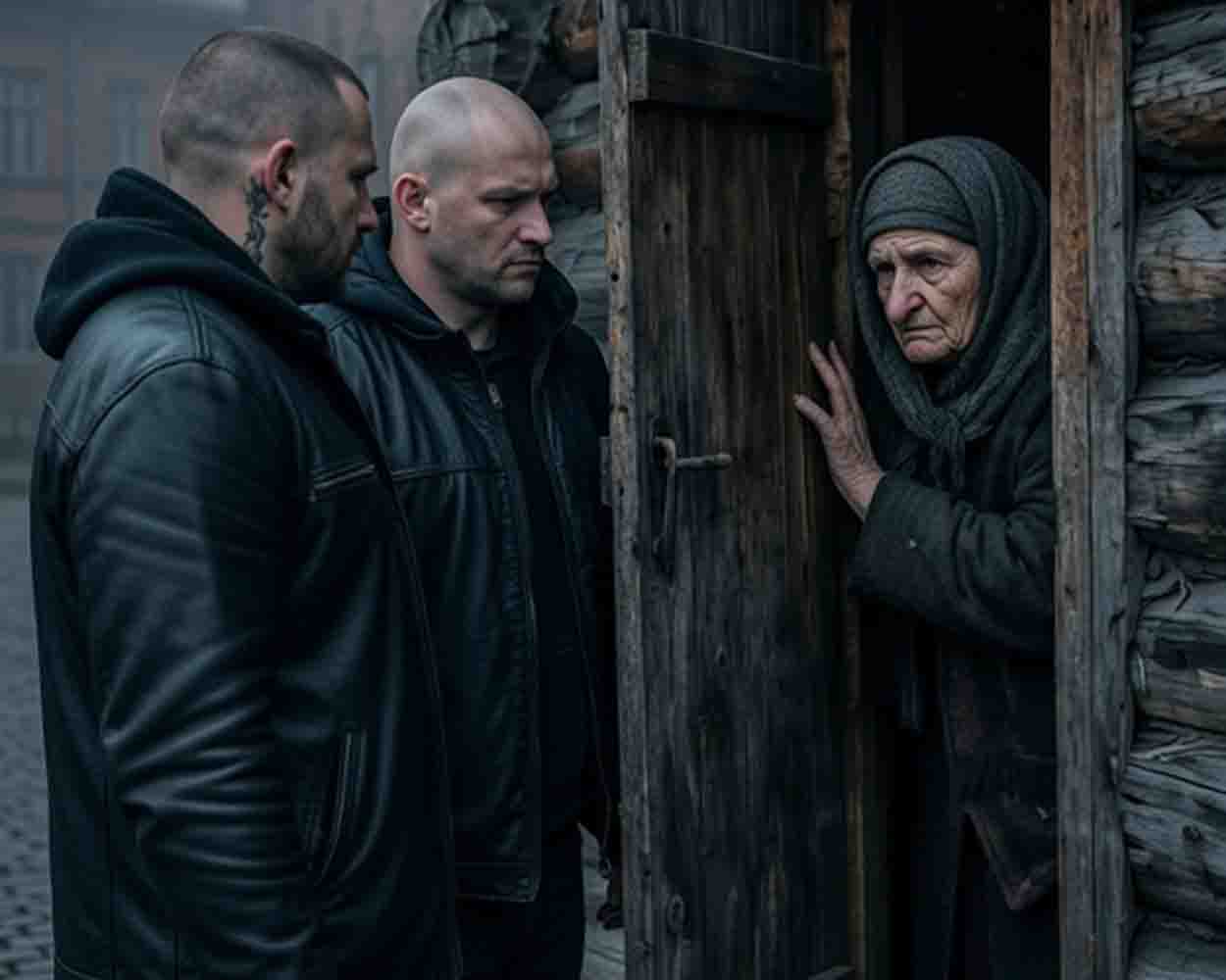 An elderly woman living alone in a dilapidated house faced a severe winter blizzard. Suddenly, four intimidating men covered in tattoos knocked on her door, begging for shelter from the deadly storm. Despite seeing a gun and piles of cash in their bag, she allowed them to stay, showing them kindness and warmth. The next morning, the supposed criminals shocked everyone. Before leaving, they repaired her leaking roof, chopped firewood, and left a stack of money on the table. She realized that sometimes, the most dangerous-looking strangers show more gratitude than lifelong neighbors.