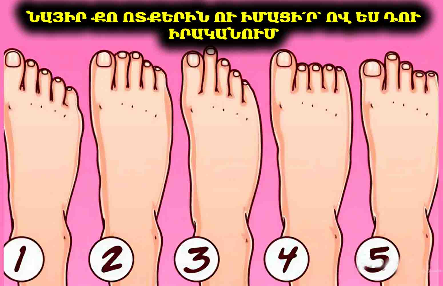 Մարմինը երբեմն ասում է այն, ինչ խոսքերը չեն ասում։ Քո ոտքի ձևը կարող է պատմել քո բնավորության այն կողմերի մասին, որոնք նույնիսկ դու չես նկատել